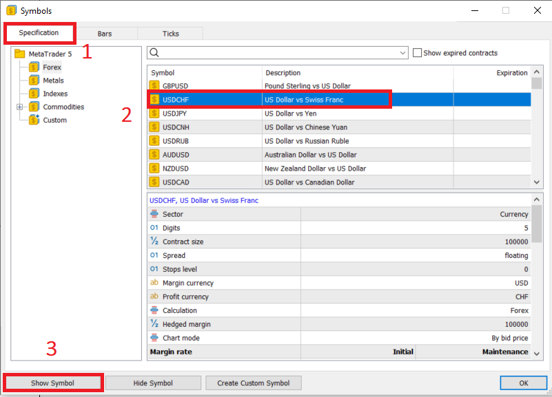 3.4 كيفية عرض أسعار السوق في MT5 وزيادة معلمات عرض "عمود" أسعار السوق