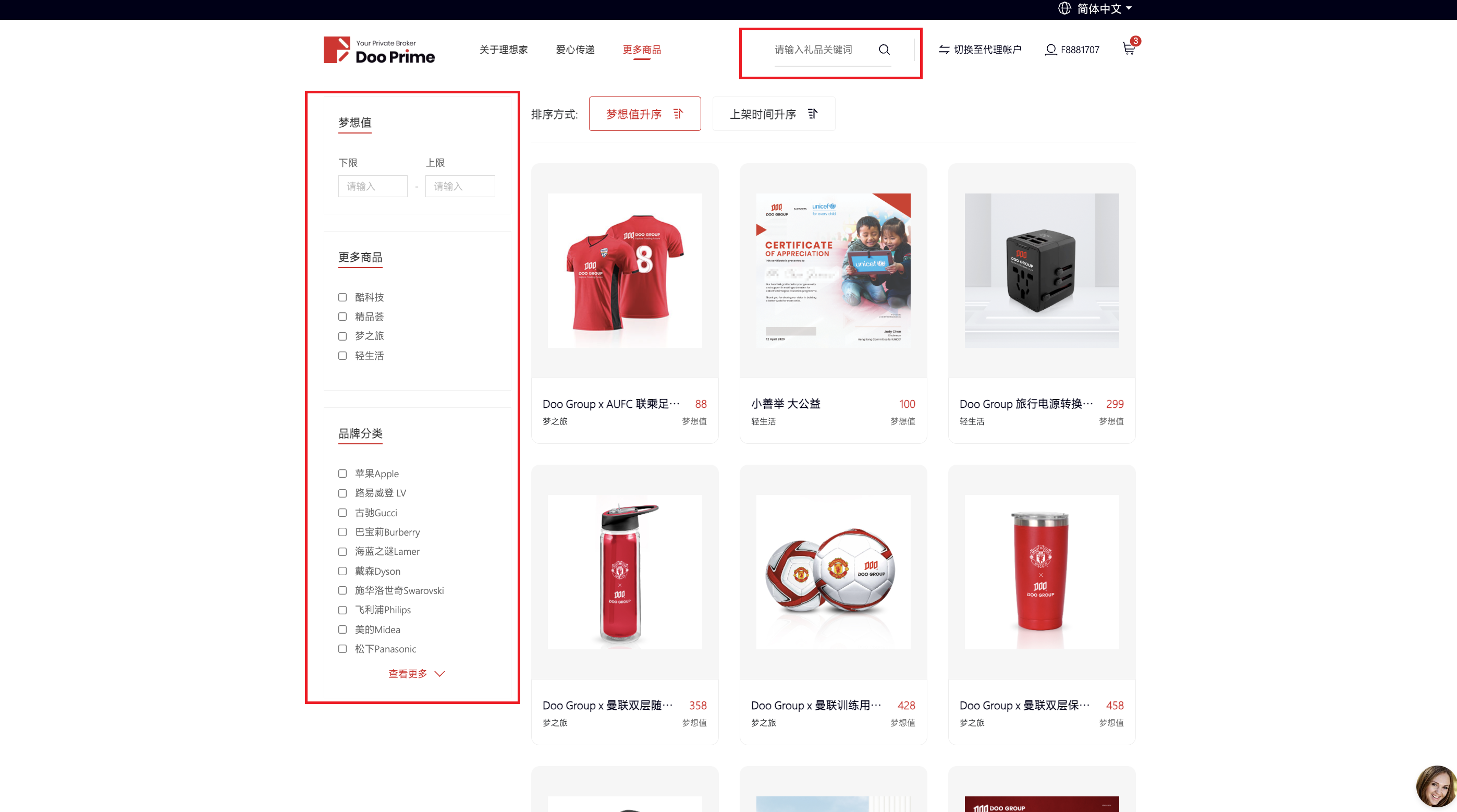 - Log in to the Doo Prime "Ideal Home" Points Mall and search for the gift you want by name/dream value/category/brand