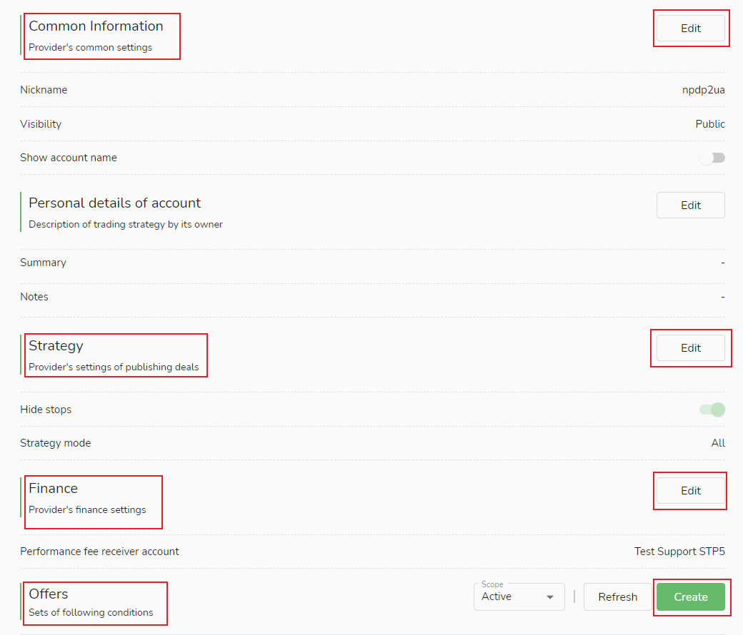 새로운 시그널 소스 생성이 완료되면 [제목], [전략], [성과수수료 계정]을 설정하고 [복사 조건]을 생성할 수 있습니다.