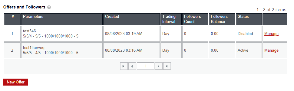 b. "새 제안"을 클릭합니다. 제안 및 팔로어 테이블에는 모든 제안, 해당 상태, 팔로어 수 및 각 제안의 총 "팔로어 잔액"에 대한 정보가 표시됩니다.