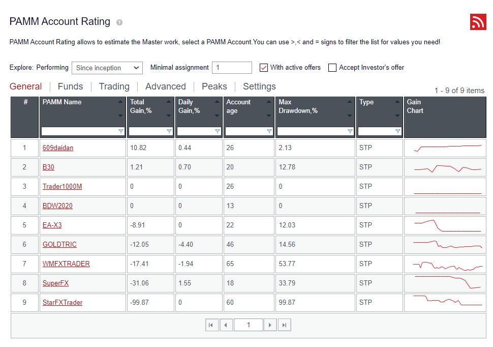b. 对PAMM账户进行排序,找到最吸引人的账户以加入。