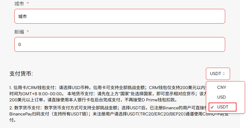 - Trên trang thanh toán "Quốc gia" Chọn quốc gia và tiểu bang của loại tiền tệ mà bạn muốn thanh toán và Tiền tệ thanh toán Chọn loại tiền tệ tương ứng từ menu thả xuống (ví dụ:Nhân dân tệ).